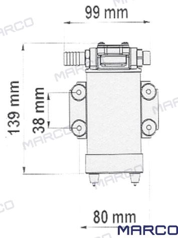 Oil pump with nickel-plated brass body, bronze gears and stainless-steel shaft. They include a kit of 8/6 and 6/4 mm reducing tubes. Self-priming up to 2 m. Permanent magnet motor with brushes. Ip55 protection. Flow speed: 20 l/h – 60 l/h – 330 l/h